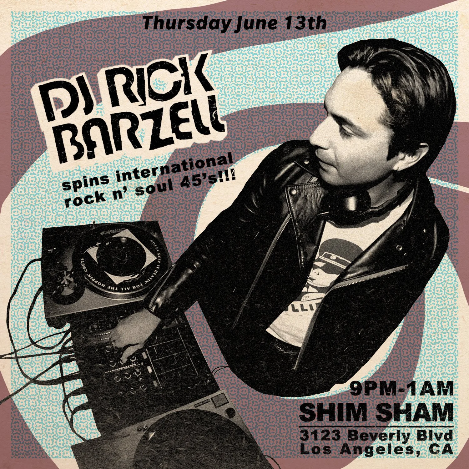 Catch #cretinhopla DJ Rick Barzell spinning international rock n’ soul 45’s at one of L.A.’s newest local watering holes, Shim Sham