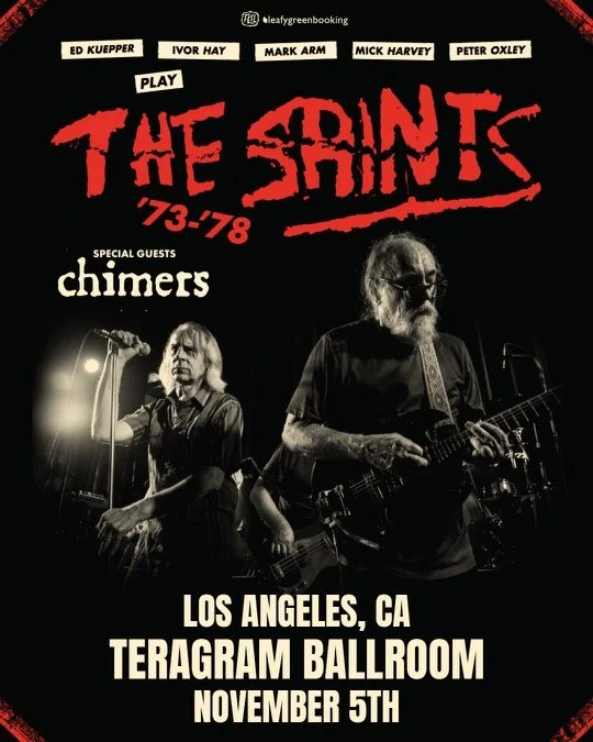 Catch The legendary Australian punk rockers The Saints with the one and only #MarkArm of #mudhoney. Doors at 7pm! Don’t miss @chimers_band kicking off the show.
